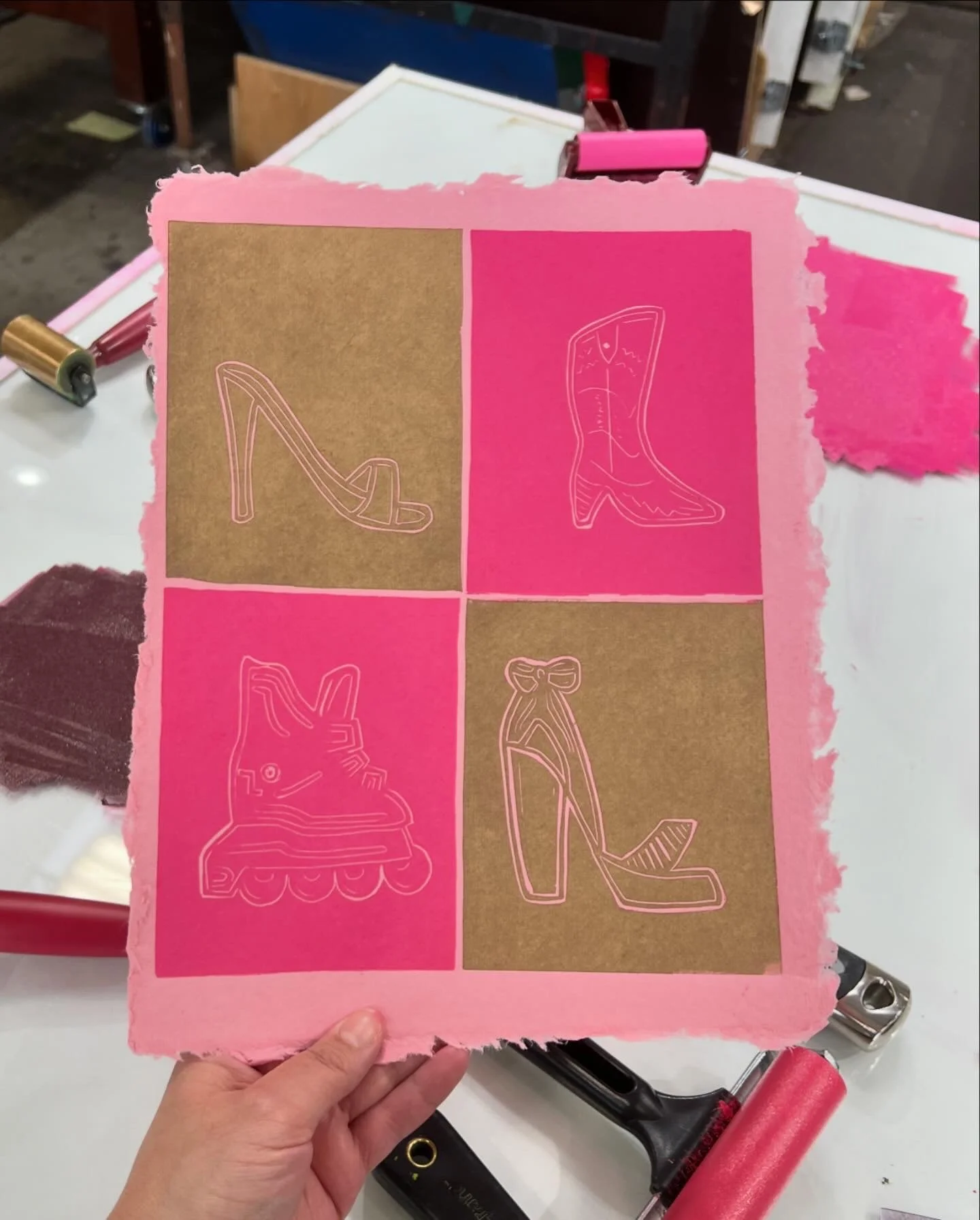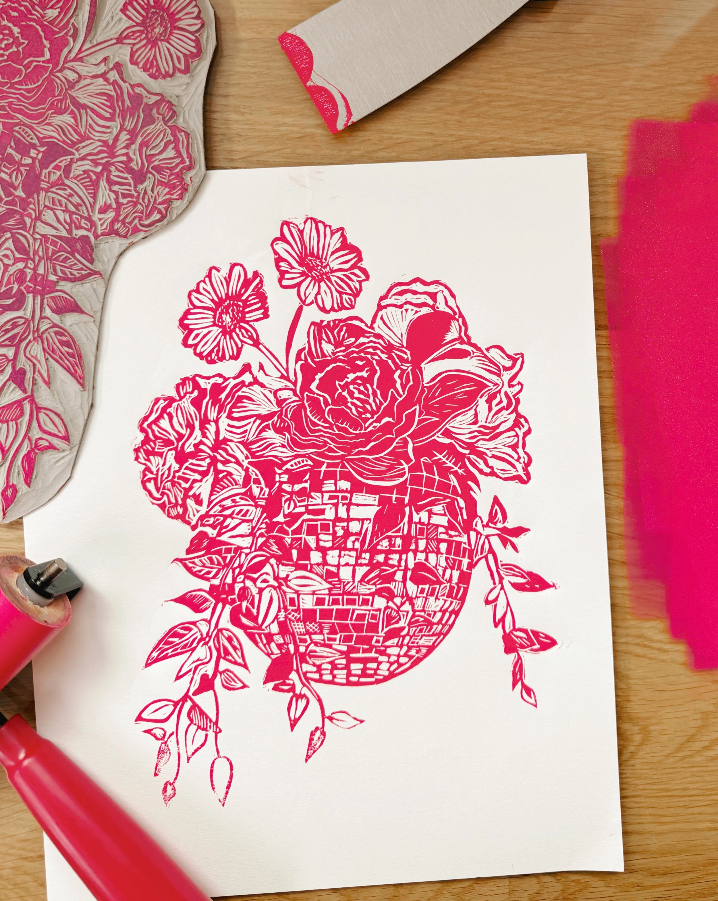 In 2019, I bought a Gelli plate to learn how to monoprint for fun. This turned into me trying a screen printing class, which then turned into a relief printing class in 2022. The rest was history. I have been committed to relief printing, particularly linocut, as my primary creative practice. I have had the pleasure of showing my work in my local area, as well as becoming a part of the Seattle printmaking community.