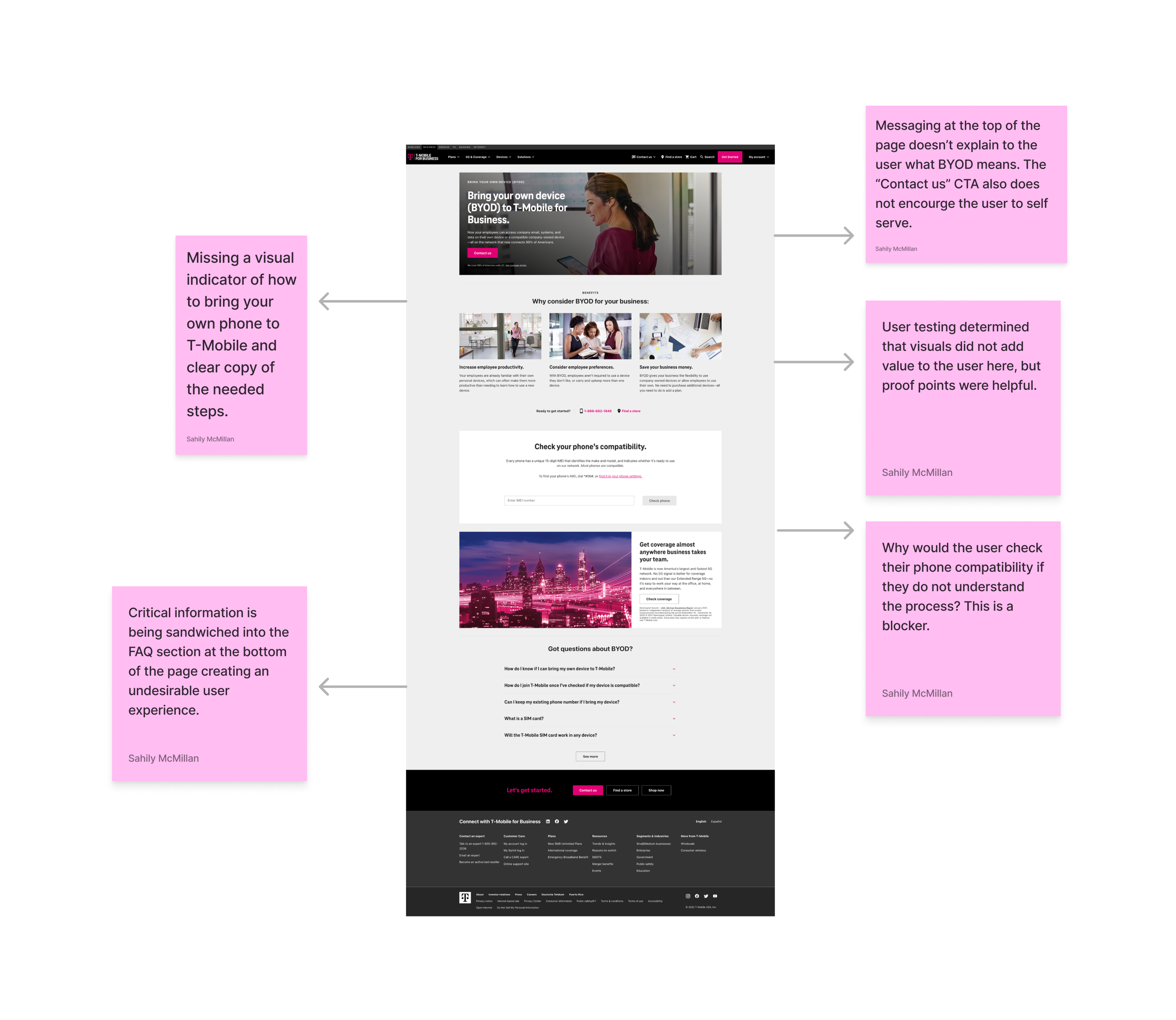 While the benefit is valuable to business customers, the existing Bring Your Own Device page was not performing to benchmark. The overall page had a high bounce rate and low engagement.